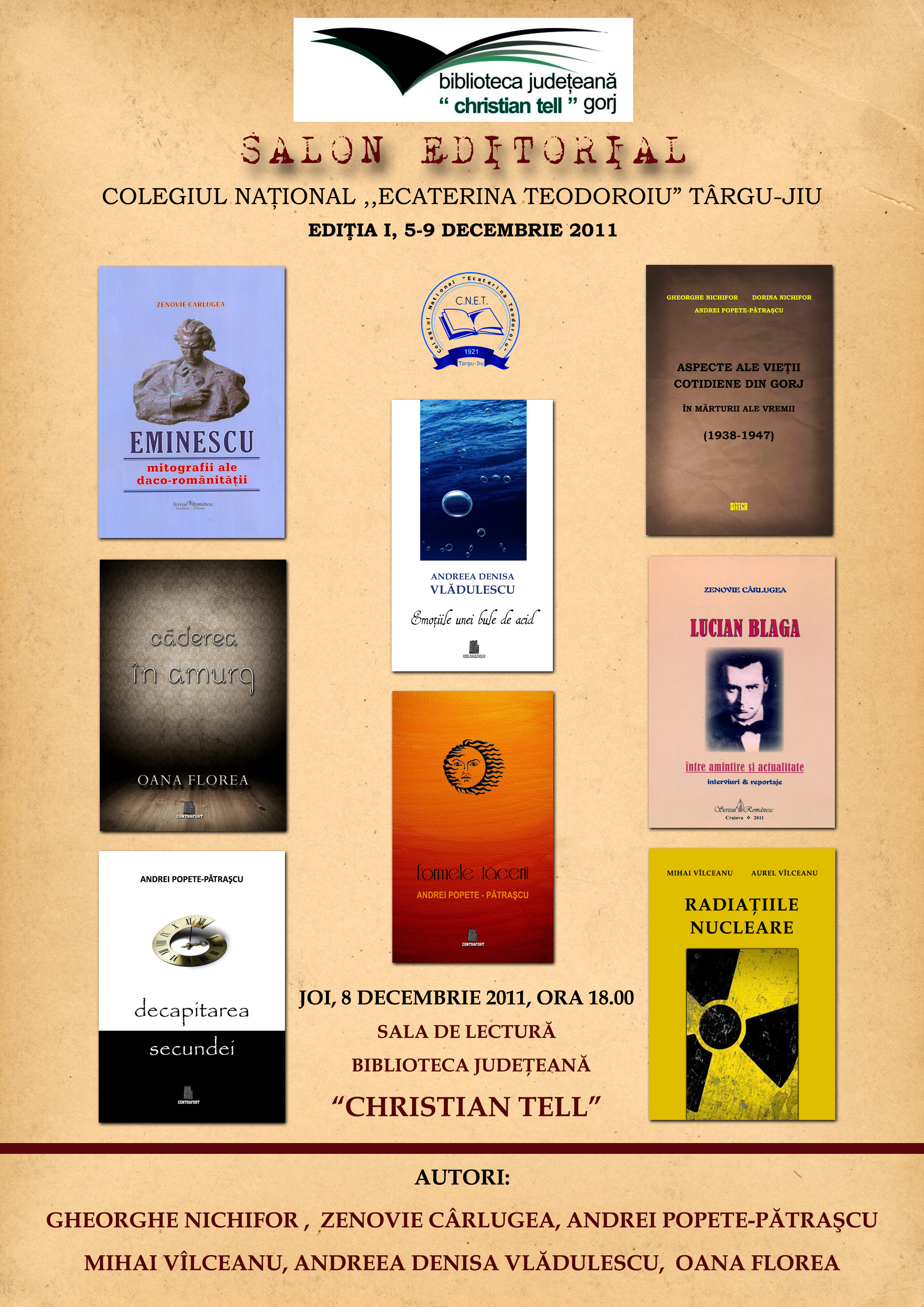 CNET: Salon Editorial, joi, 8 decembrie 2011, ora 18.00, Biblioteca Judeţeană Christian Tell admin.5 decembrie 20115 decembrie 2011andrei popete Navigare în articole PrecedentUrmător Apreciază Încarc...