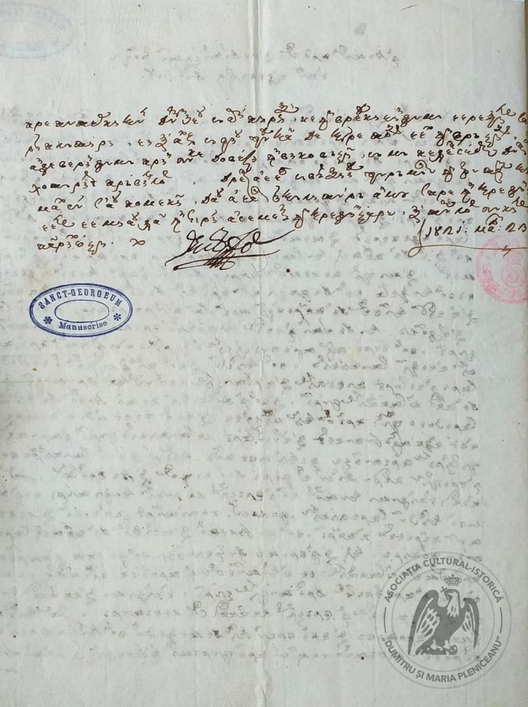 Colecția digitală Restitutio – Asociația Pleniceanu, în original Arhiva Națională a României, Fond Muzeul Saint Georgeos, dos. III/12, f. 1, 1v.)