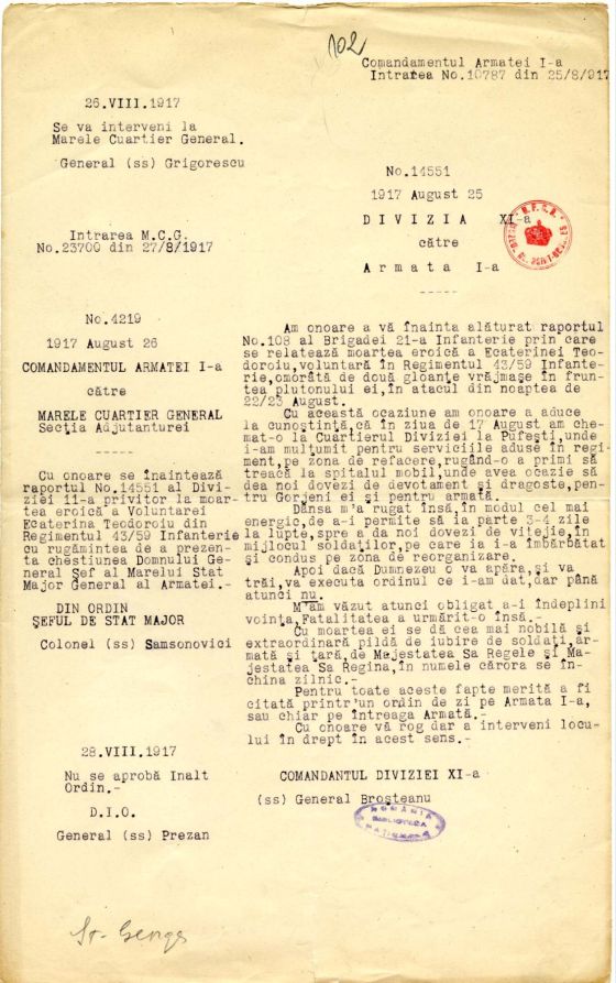 Document inedit despre ultimele zile din viața Eroinei Ecaterina Teodoroiu!